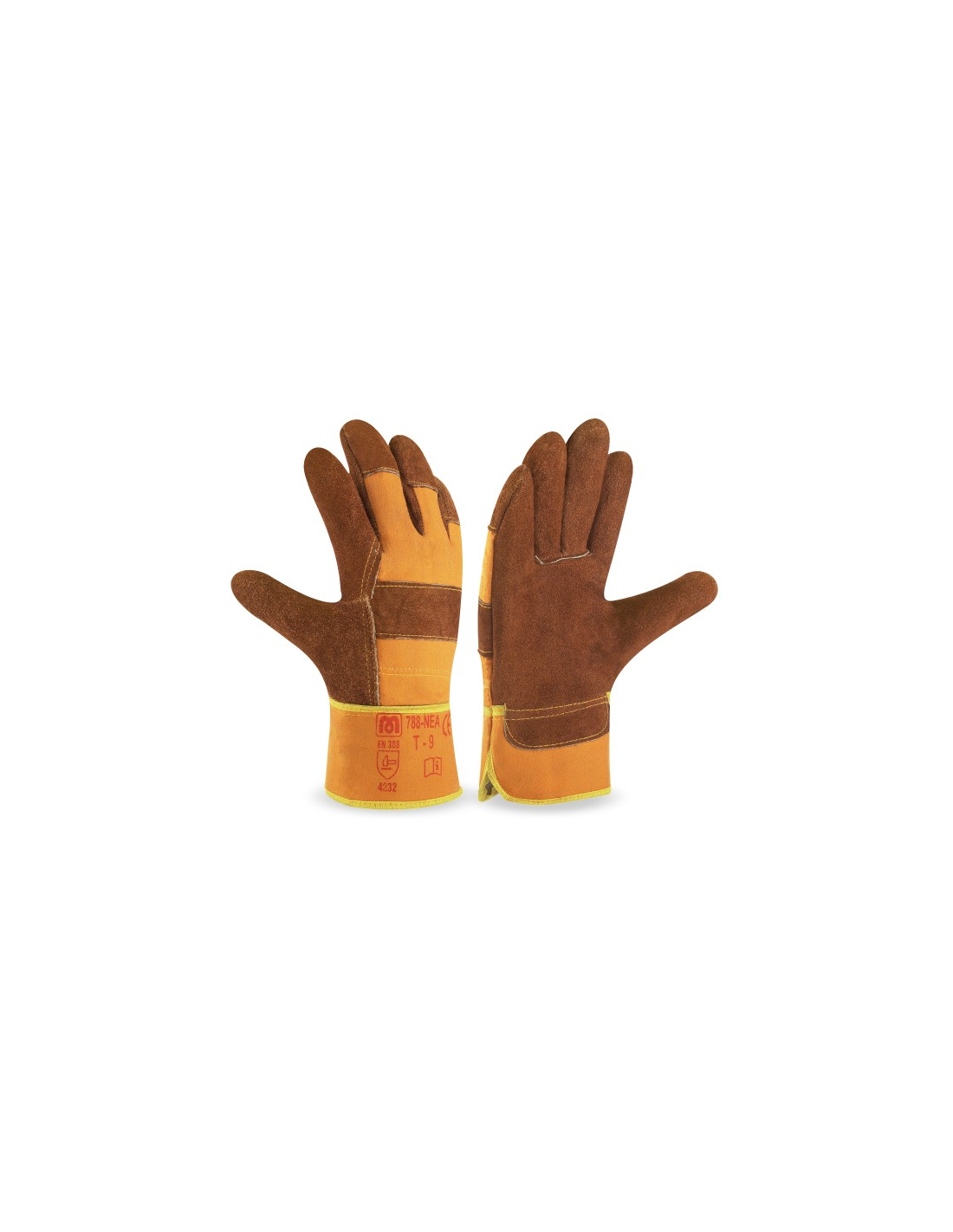 GUANTE MIXTO DE SERRAJE VACUNO 1ª COLOR MARRÓN MANGUITO RIGIDO