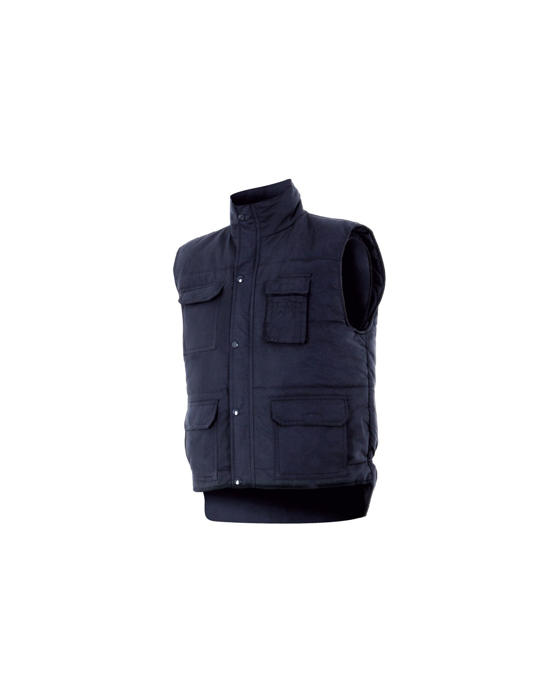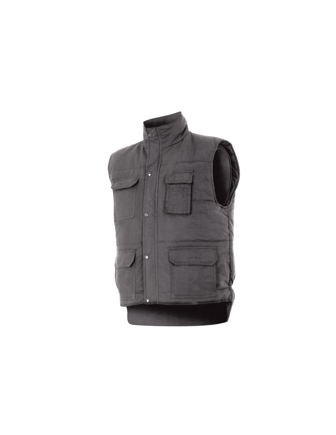 Chaleco multibolsillos acolchado con cierre central de cremallera oculta con tapeta y botones automáticos.