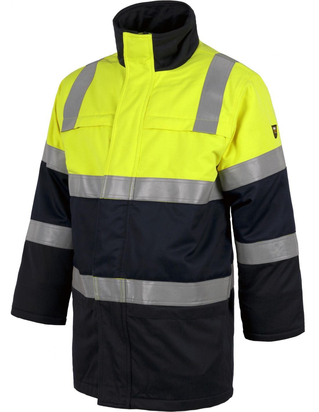 Parka combinada con alta visibilidad, ignífuga, tejido modacrílico, algodón y antiestático. PROTECCIÓN TOTAL: CERTIFICADO IGNÍFUGO EN11612 (A1,A2,B1,C1,F1), SOLDADURA EN11611 CLASE 1 (A1+A2), ANTIESTÁTICO EN1149-5, ARCO ELÉCTRICO EN61482-2 CLASE 1, ALTA VISIBILIDAD EN20471: 2013, CLASE 1.